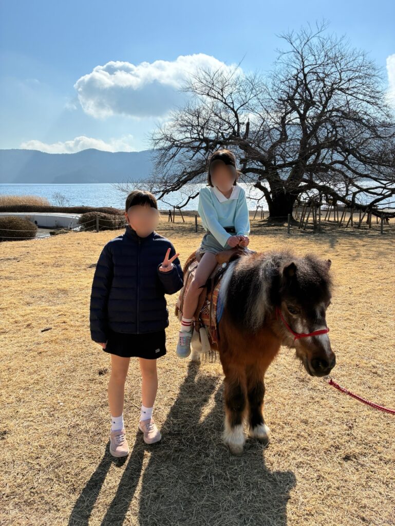 ポニー乗馬もしました。芦ノ湖をバックに素敵な写真を撮らせてもらえます!