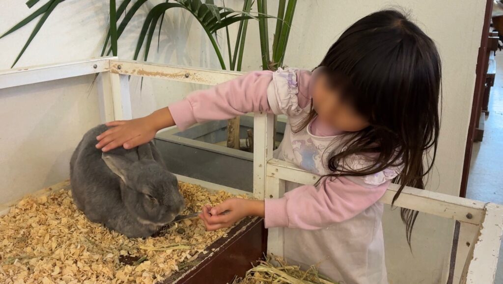 うさぎにはおやつをあげたよ。